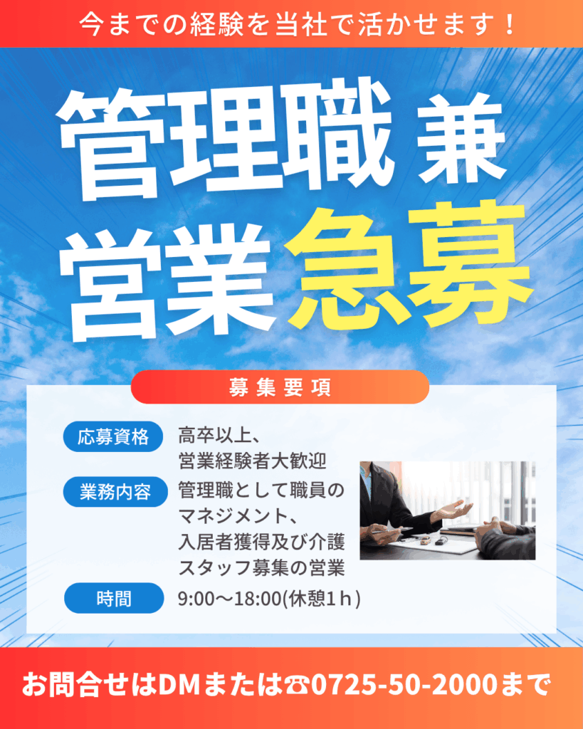 一緒に働く【管理職兼営業スタッフ】を募集しています✨