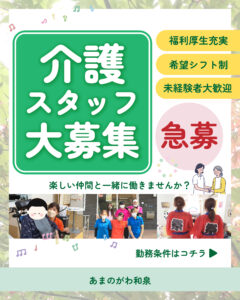あまのがわ和泉では、利用者さまの笑顔を一番近くで支えるヘルパーさんを募集中✨ 家庭的な雰囲気の中で、安心して働ける環境です🌿