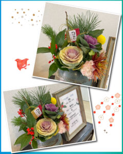 お正月らしい松や葉牡丹が豪華な花束です😊✨