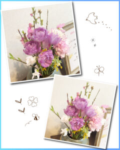 今回は、華やかで目を惹く紫の八重咲きチューリップが主役の色とりどりのお花です🌸
